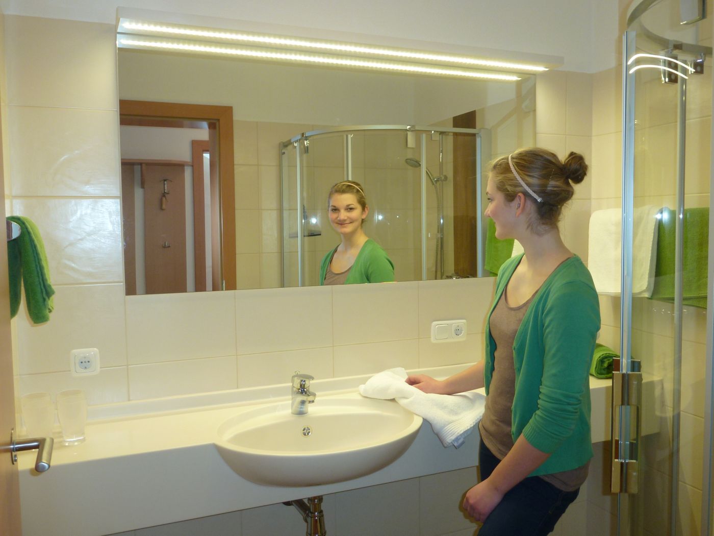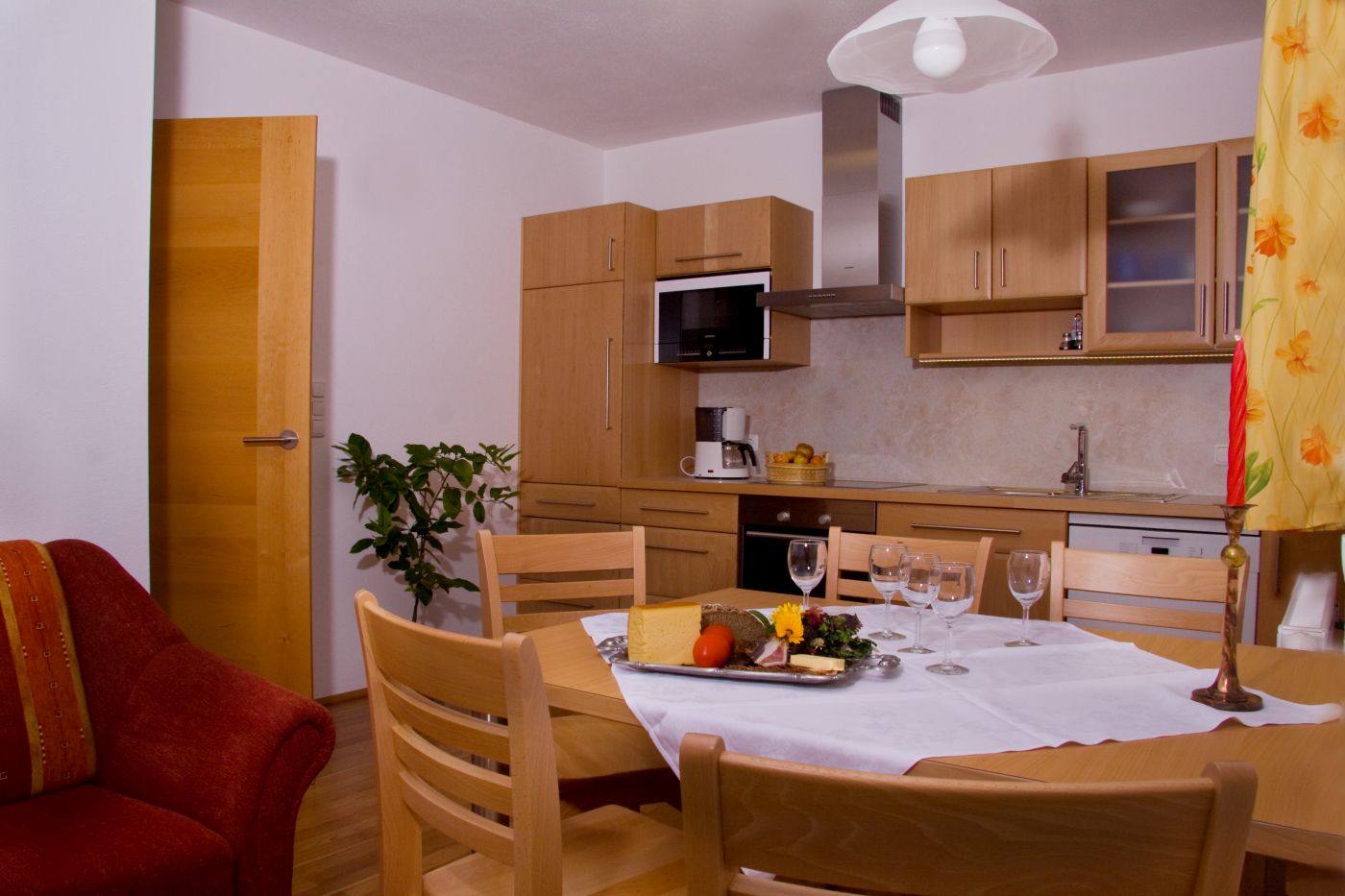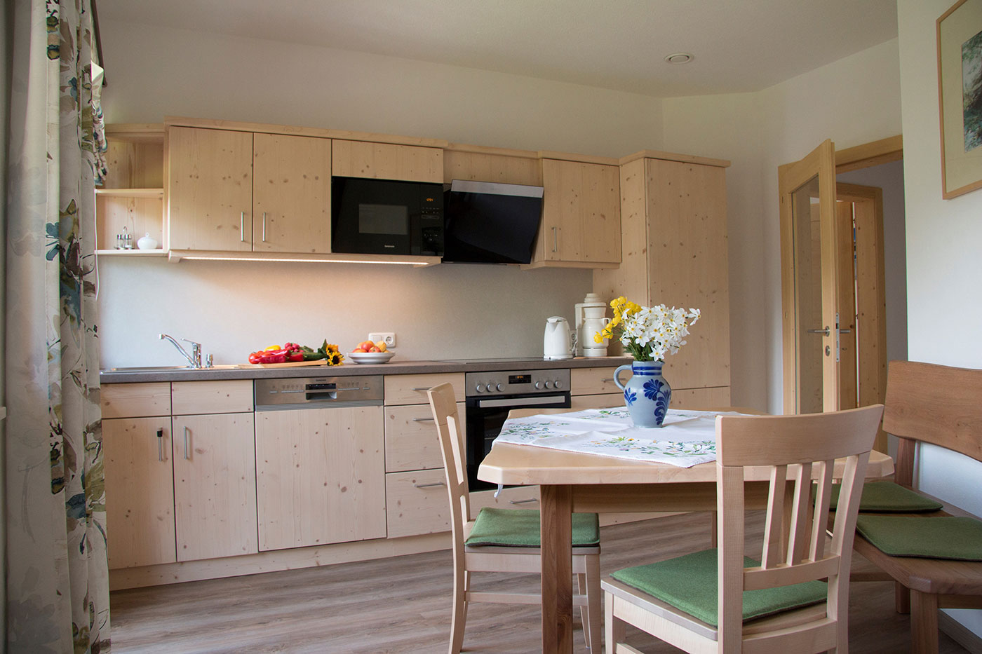 Die Wohnküchen sind mit E-Herd, Mikrowelle, Geschirrspüler, Wasserkocher und Kaffeemaschine ausgestattet, Couch mit SatTV, umweltfreundliche Heizung mit Holz-Hackschnitzeln aus dem eigenen Wald.